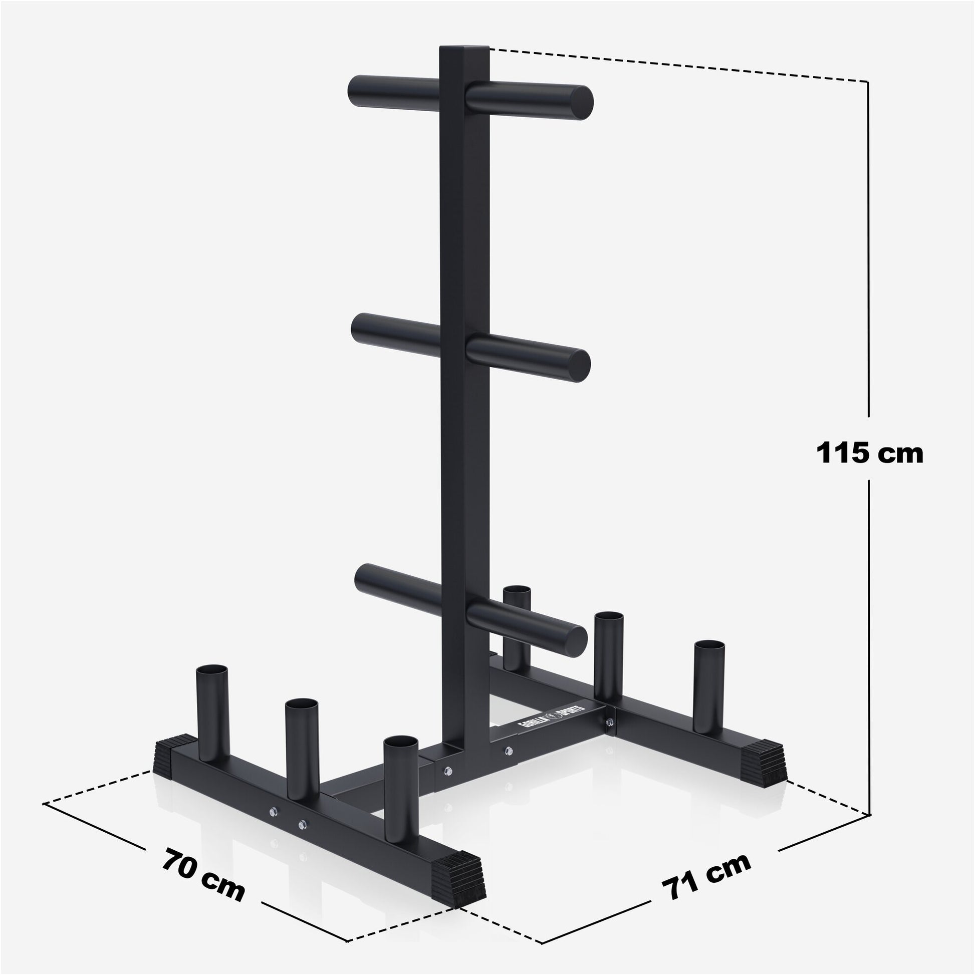 - Bietet 6 Hantelscheibenaufnahmen mit je 22 cm